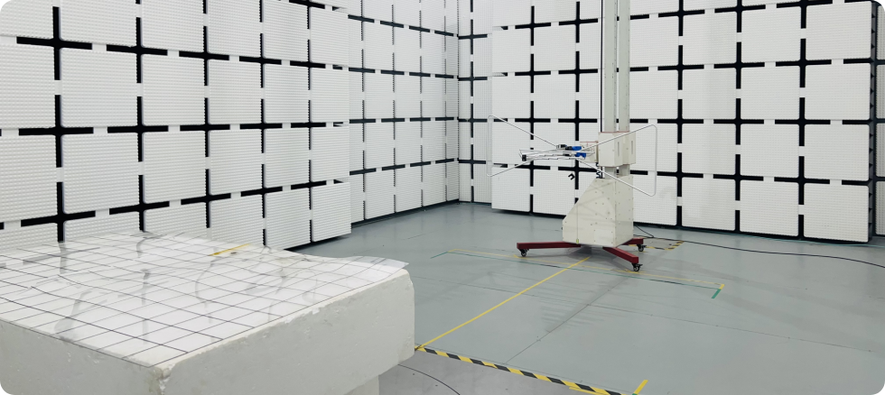 电磁兼容((EMC)实验室拥有目前国际标准通用的3米法电波暗室和屏蔽室,测 试系统均由世界知名制造商提供。